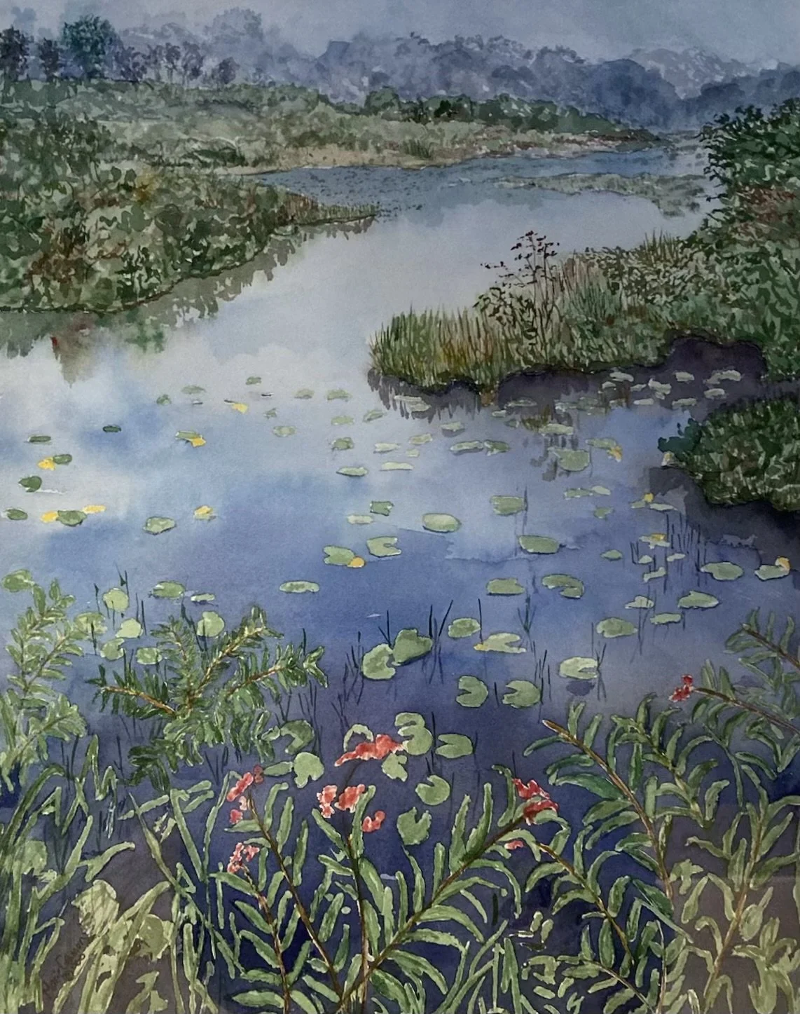 She enjoys painting and working color. Color is her favorite!! She has exhibited her art in venues throughout central Pennsylvania and in Philadelphia as well as western PA. She often has art hanging in the Hershey Library with other artists from Hershey Area Art Association. She enjoys painting in plein air, landscapes, seascapes, still life, animals and sometimes people!! She lives with her husband of many years and two cats.